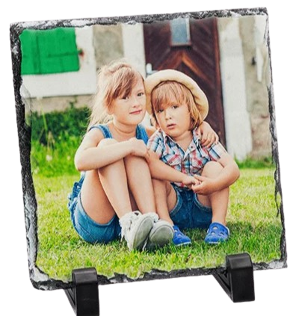 Our sublimation printable Photo Slates provide the perfect opportunity to showcase precious memories, and are now available in several sizes. These slates are supplied with a pair of sturdy plastic stands for display and come individually boxed.